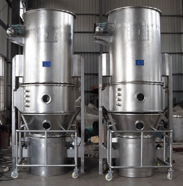 PGL型噴霧干燥制粒機將一定的粉體物料放入流化床內作為晶種,液態物料經泵送至噴嘴霧化器,首先與噴霧用高溫空氣瞬間除去部分水份,殘余水份則在底部流化床低溫干燥完成,并同時成粒。