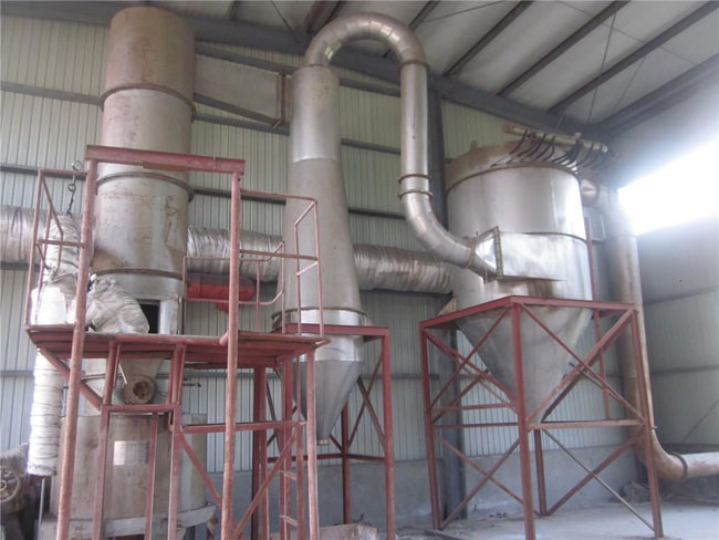 熱空氣由入口管以適宜的噴動(dòng)速度從干燥機(jī)底部進(jìn)入攪拌粉碎干燥室,對(duì)物料產(chǎn)生強(qiáng)烈的剪切、吹浮、旋轉(zhuǎn)作用,于是物料受到離心、剪切、碰撞、摩擦而被微粒化,強(qiáng)化了傳質(zhì)傳熱。在干燥機(jī)底部,較大較濕的顆粒團(tuán)在攪拌器的作用下被機(jī)械破碎,濕含量較低、顆粒度較小的顆粒被旋轉(zhuǎn)氣流夾帶上升,在上升過(guò)程中進(jìn)一步干燥。由于氣固兩相作旋轉(zhuǎn)流動(dòng),固相慣性大于氣相,固氣兩相間的相對(duì)速度較大,強(qiáng)化兩相間的傳質(zhì)傳熱,所以該機(jī)生產(chǎn)強(qiáng)度高。