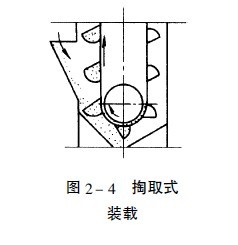 干燥設備的斗式提升機可垂直或傾斜輸送散狀料,干燥設備的斗式提升機的特點是橫斷面尺寸較小,占地面積少,運輸系統布置緊湊,提升高度大,有良好的密封性等。其缺點是過載的敏感性大,斗和鏈易損壞。 干燥設備的斗式提升機運送物料通常可達30m,一般為12-20m,生產能力在300t/h以下,一般情況下采用直立式提升機,干燥設備的斗式提升機已有定型的產品,可供選用。其結構特征及適應范圍如表2-8。 (二)分類和裝載、卸載方法 干燥設備的提升機的分類有多種,按運送物料的方向可分為直立式和傾斜式。按卸載特性可分為離心式、離心, 重力式、重力式。按裝載特性可分為掏取式、流入式。按料斗的型式可分為深斗式、淺斗式和鱗斗式(三角式)。按牽引構件型式可分為帶式、環鏈式、板鏈式。按工作特性可分為重型、中型、輕型。 為了適應被輸送物料的不同裝載與卸載特性,其料斗可分為深圓底形與淺圓底形。深圓底形料斗適用于輸送干燥的、松散的、易于卸載的物料,如水泥、塊煤、干砂、碎石等。淺圓底形料斗適于輸送濕的容易結塊的、難于卸載的物料,如濕砂、型砂等。 斗式提升機在尾部裝載,在頭部卸載。 (1)裝載方法有兩種型式: ①掏取式(圖2-4)這種方法由料斗在尾部掏取物料而實現裝載。主要用于輸送粉末狀、粒狀、小塊狀的無磨琢性的散狀物料。當掏取這些物料時,不會產生很大阻力。在掏取物料時,料斗可以有較高的運動速度,一般為0.8-2.0m/s。②流入式(圖2-5)這種方法是物料直接流入料斗內而實現裝載。用于運輸大塊和磨琢性大的物料。其料斗是密接布置,以防止物料在料斗之間撒落,料斗運動速度不得超過1m/s。 (2)卸載方法有三種型式。 ①離心式(如圖2-6),h<r2; ②離心" 重力式(如圖2-7),r2<h<r1; ③重力式(如圖2-8),h>r2.當料斗由直線提升運動變為旋轉運動(即料斗剛繞入驅動滾筒)后,料斗內物料的任一質點同時受重力G和離心力F的作用。