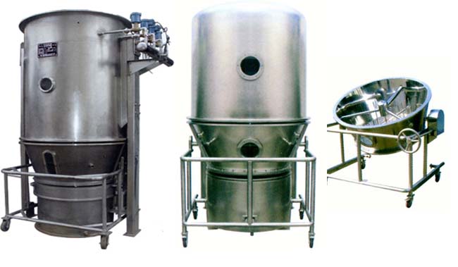 底部流化段設置倒錐體結構,使干燥氣體流通截面自下而上逐漸擴大,底部氣流相對較大,上部氣流相對較小,從而保證下部的大顆粒處于流化狀態的同時,上部的小顆粒也處于流化狀態,并使熱風沿錐部旋轉,提高底部風速,縮小了攪拌軸懸臂部分的長度,增加了運轉的安全可靠性;可使軸承放在機外,有效的料液由供料泵送至氣流式霧化器,霧滴與熱風接觸即被干燥成粒狀產品,從干燥塔錐底的旋風除塵器連續排出。凈化后的廢氣由排風機抽出排入大氣。